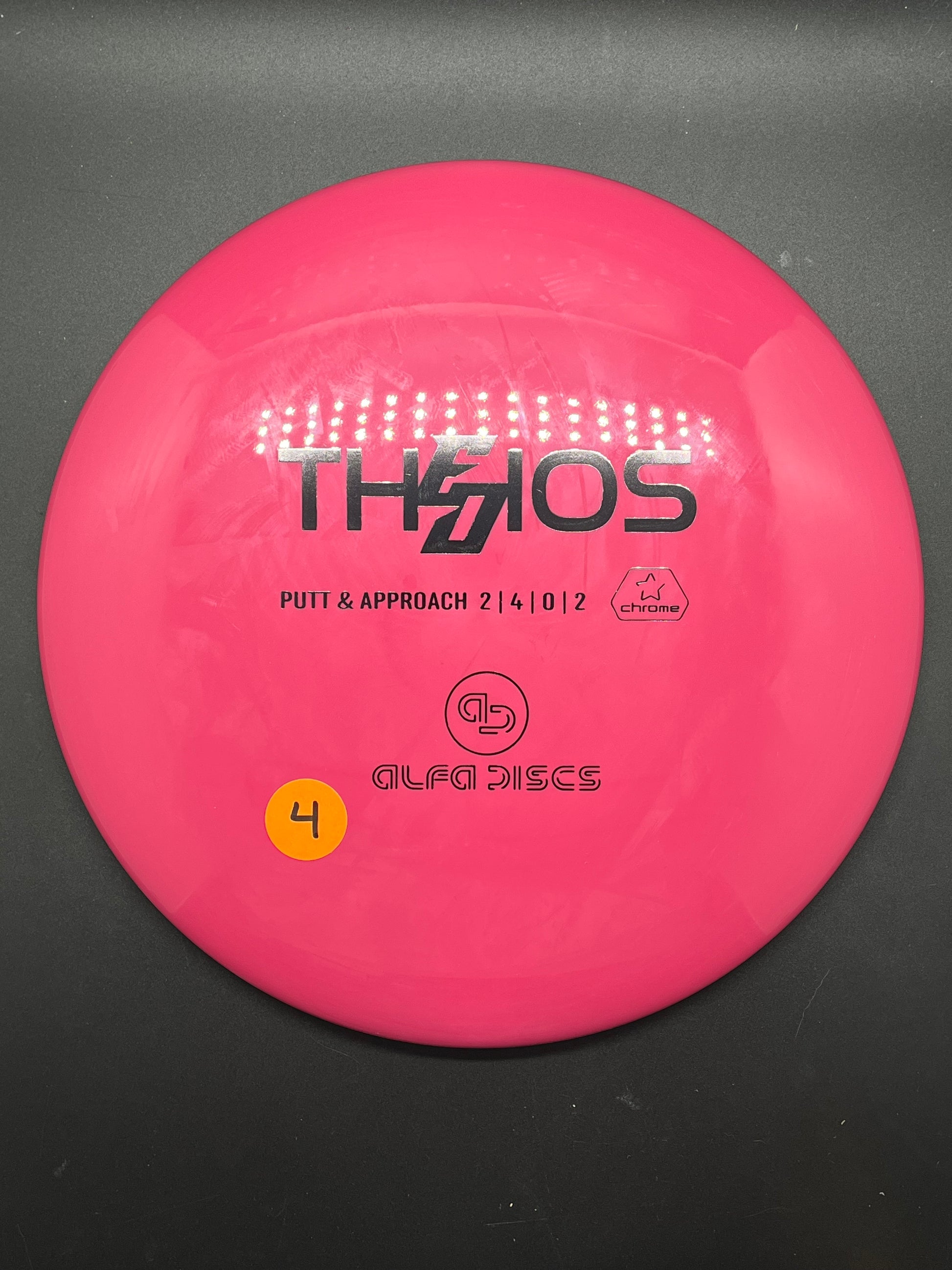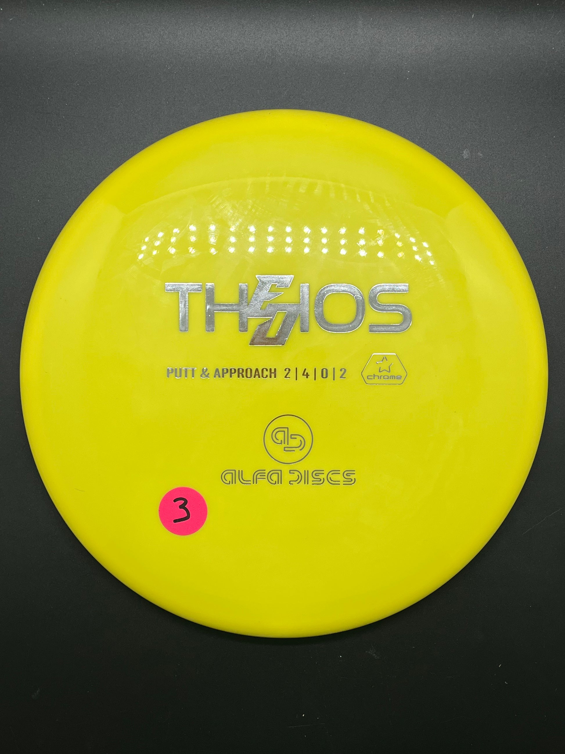 The Theios is the first putter from Alfa Discs. This is a glidey, low speed, easy-to throw putter. It easily flies straight and can handle a large variety of lines. This all-purpose putter works great for putting or for your approach shots.