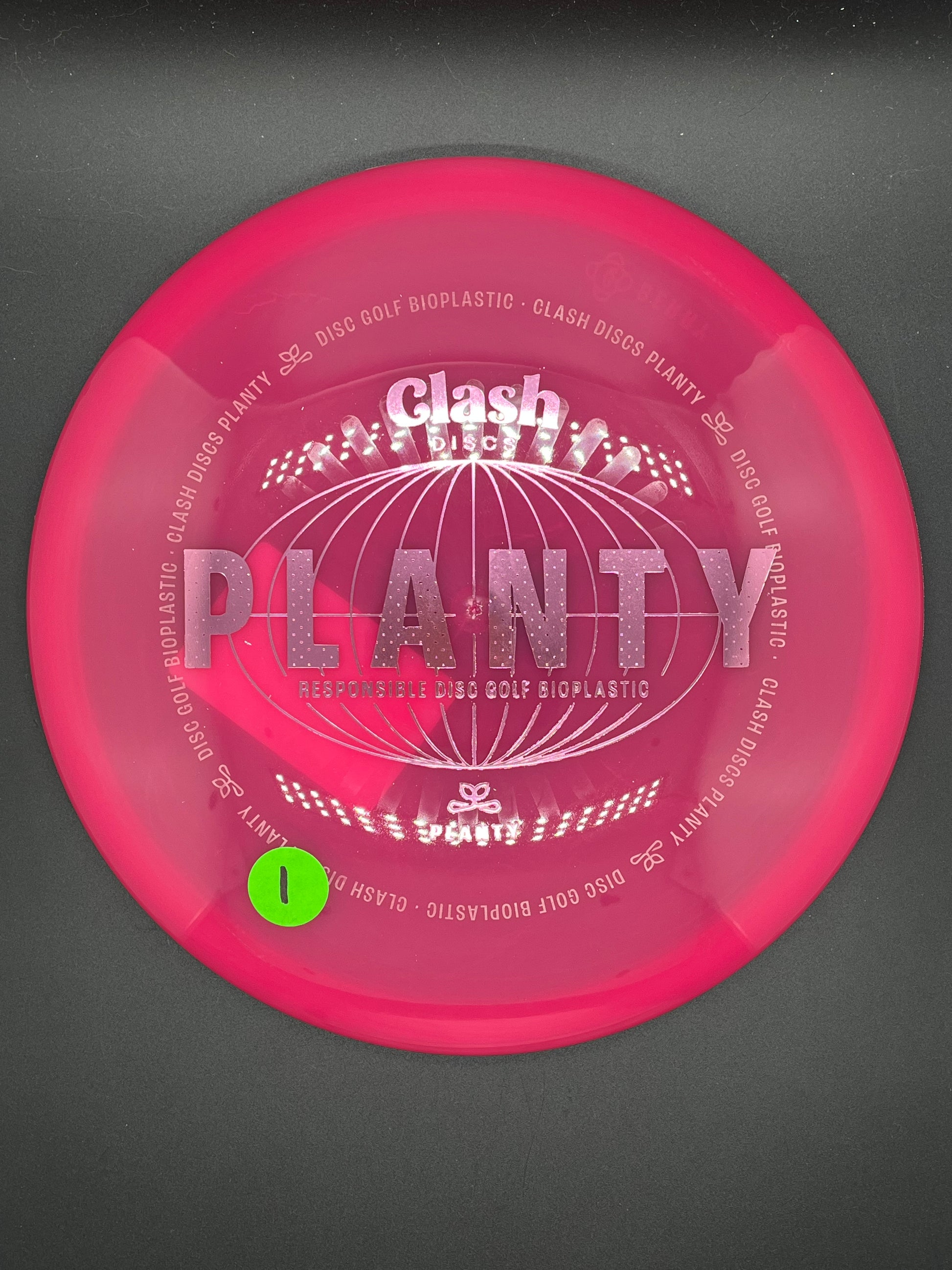 Planty plastic by Clash Discs is an environmentally responsible bioplastic for disc golf. Derived from bio-based materials, Planty utilizes plant-derived oil in its production. The result is a durable, long-lasting, high-performance blend that is not dependent on typical fossil fuels. .