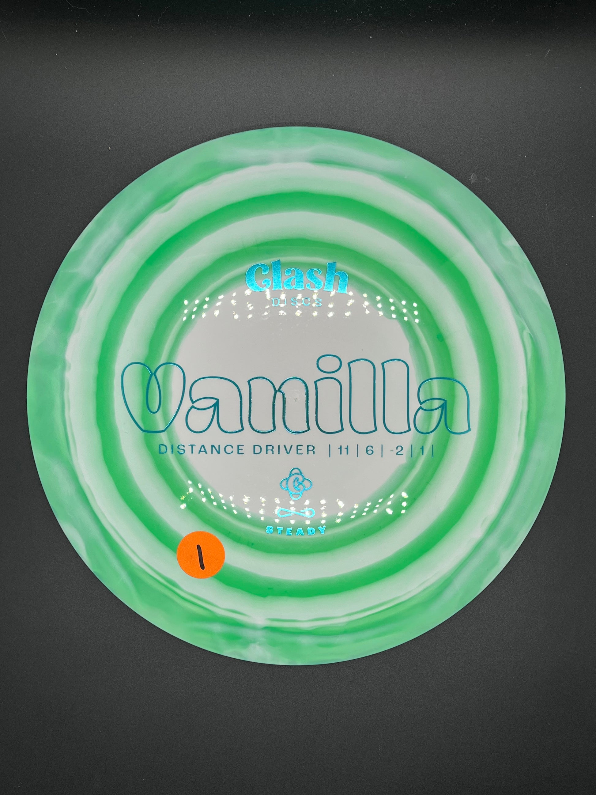 Indulge in the exceptional flight characteristics of the Clash Discs Vanilla, an understable distance driver that offers a delightful blend of glide and control. This disc effortlessly soars through the air, gracefully navigating the fairways with s-curve flights that satisfy players of all skill levels. With its impressive distance capabilities and reliable understability, the Clash Discs Vanilla is a go-to choice for big arm throws and precise shots.