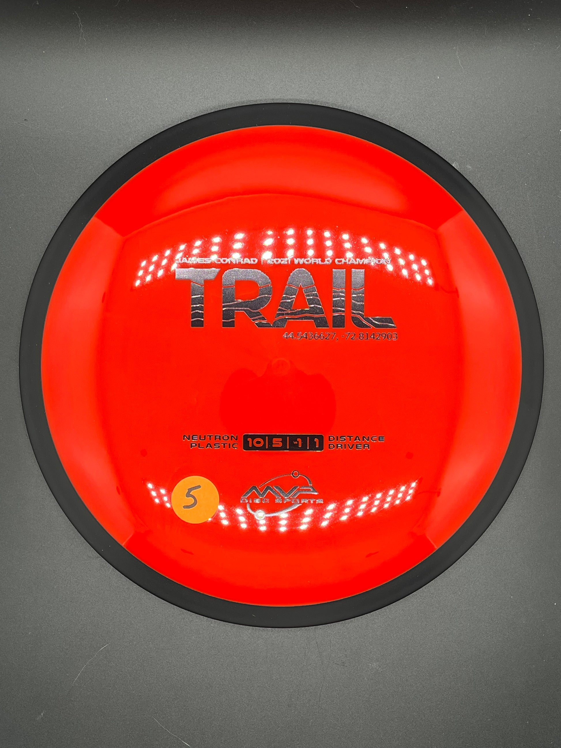 The first official 10-speed driver in the MVP lineup, the Trail is a stable-understable distance driver that, as you might expect of a Conrad disc, excels in hyzer-flip drives and turnovers. Releasing with flight numbers of 10 | 5 | -1 | 1, throwers of all power levels will find the Trail to be an exceptionally responsive driver for a variety of shot shapes, making the Trail a phenomenal disc for all skill levels.