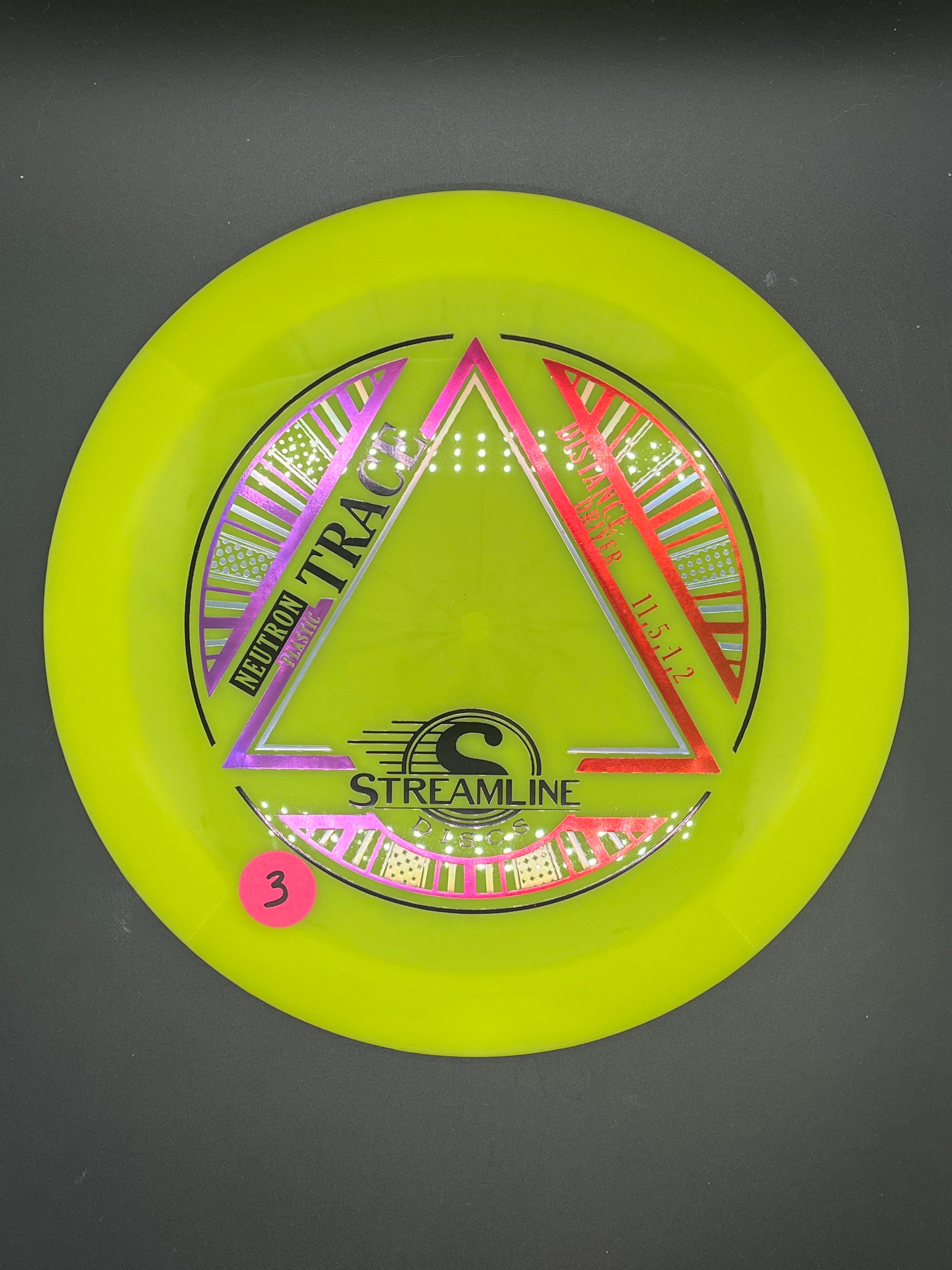 The Trace has a manageable 21mm rim width and straight-stable flight that places it squarely in the Speed 11 Power Straight market. The Trace’s moderate dome is smooth and even, with a shoulder and depth that yields excellent glide. Most players will be able to stand the Trace up on a hyzerflip, but the Trace will soak up plenty of power before being pushed off its straight line. Its ending fade is smooth but dependable for easy ranging.