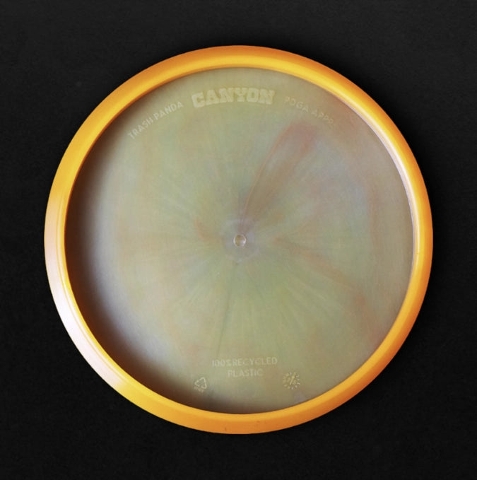 The Canyon by Trash Panda is an overstable midrange that is made in the USA out of recycled plastic. It is a dependable midrange with a comfortable rim configuration that can handle the throwing styles of newer and experienced players, always finishing with a steady fade.